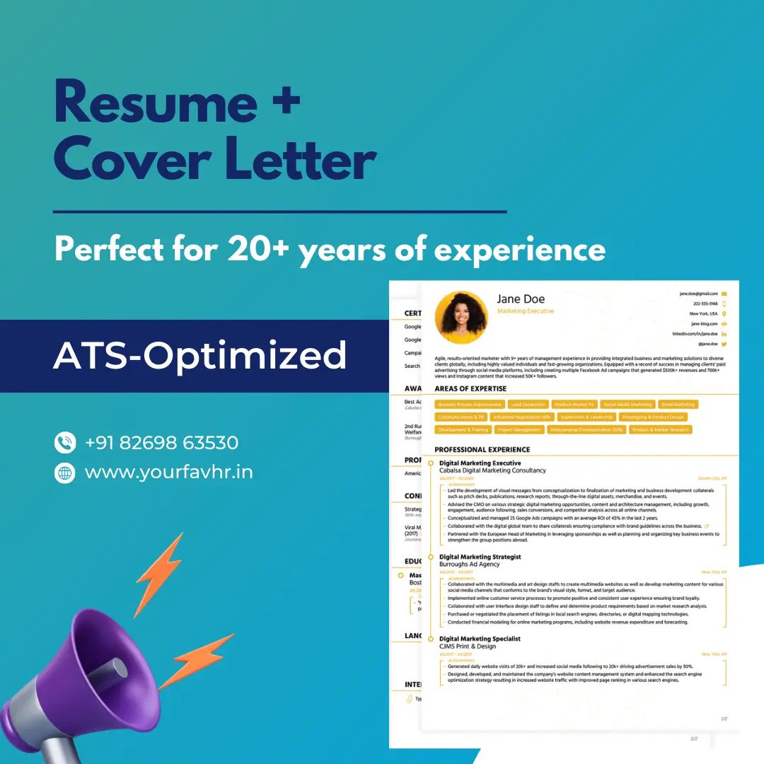 Unlock your dream job with Your Fav HR - your trusted partner in resume building, profile optimization, and job search success. We customize everything based on your experience level, ensuring ATS friendly results that get you noticed by top recruiters in India, Gulf, and US markets.